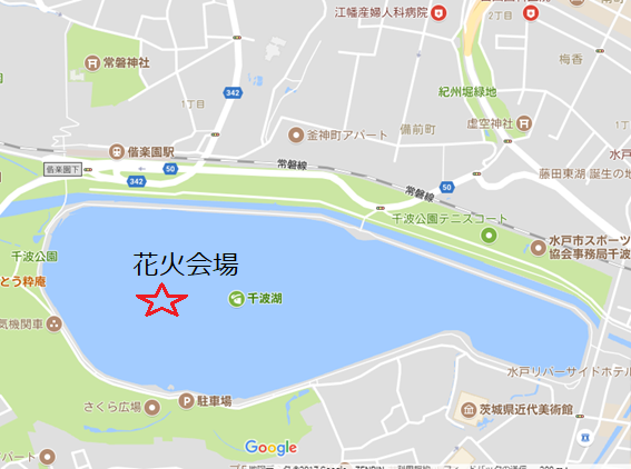 水戸駅からは、常磐線の偕楽園で下車して徒歩3分ほどで花火会場に到着できます。